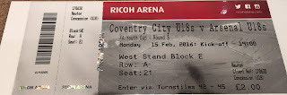 I went to the FA Youth Cup 5th round Coventry Under 18's v Arsenal Under 18's